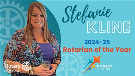 Rotarian of the Year - Stefanie Kline Rotarian of the Year - Stefanie Kline Celebrating Stefanie Kline - Rotary After Hours’ Rotarian of the Year!