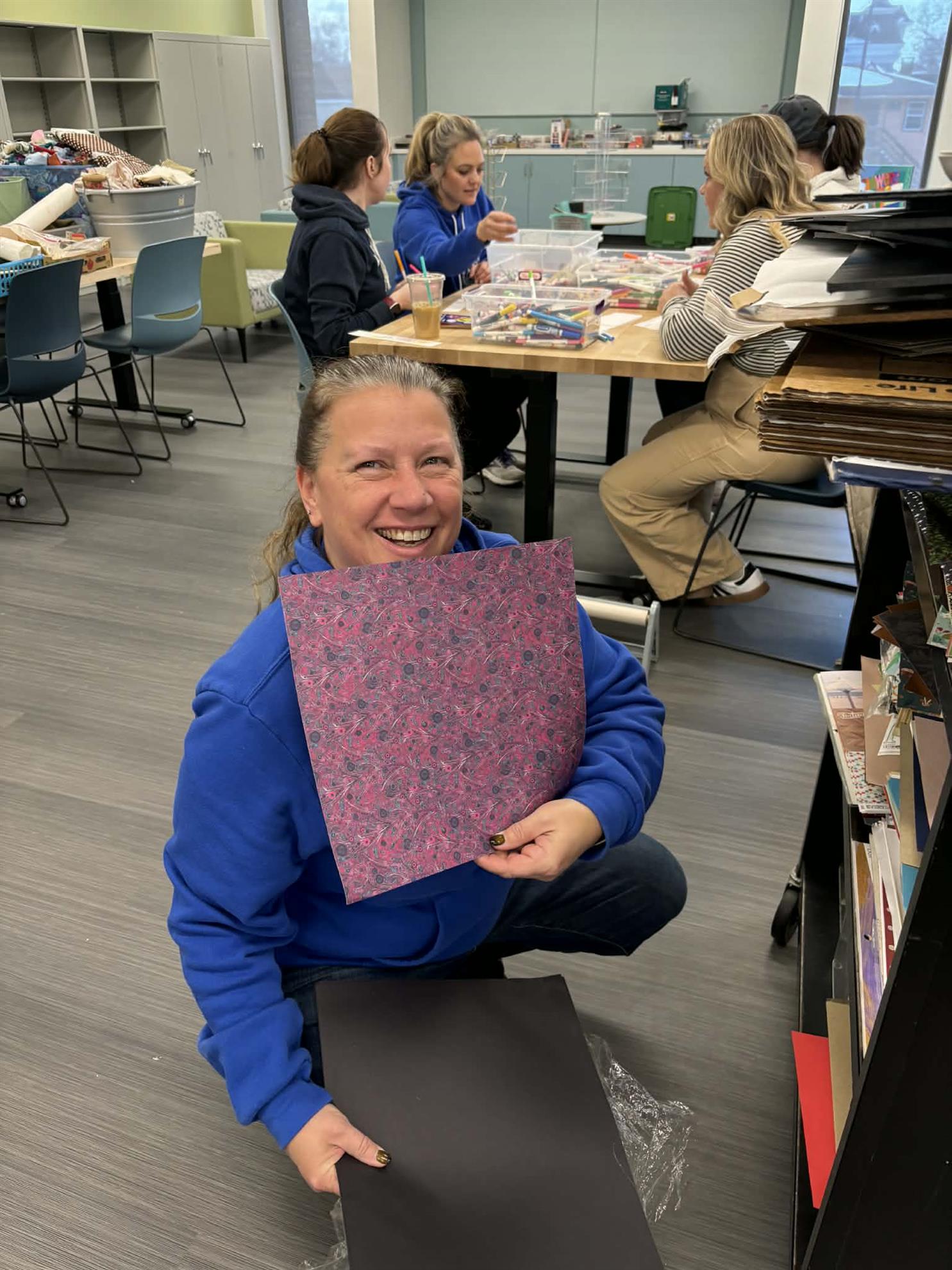 After loading up the van at the Franciscan Spirituality Center (our Tetris skills are 10/10), we carried everything up to the library’s newly renovated Creative Center.
